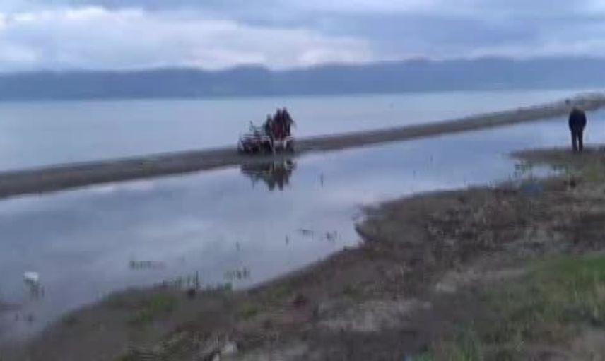 ATV'nin tekerlerinin çamura gömülmesiyle durum fark edildi. Çevredeki vatandaşlar kısa sürede olay yerine gelerek yardımda bulundu.