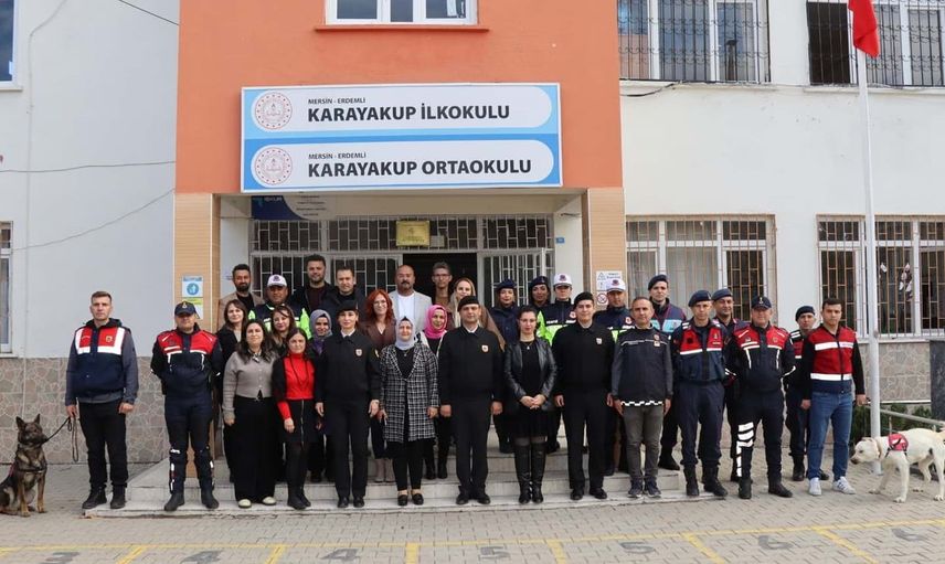 Mersin İl Jandarma Komutanlığı ekipleri, Erdemli ilçesinde bulunan Karayakup İlkokulu ve Ortaokulunu bilgilendirme ve tanıtım ziyaretinde bulundu. Ziyaret kapsamında jandarma personeli, öğrencilere trafik ve asayiş konularında bilgilendirme yaparak jandarmanın görev ve sorumluluklarını anlattı.
