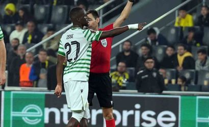 FENERBAHÇE’NİN KOLOMBİYALI FORVETİ JHON DURAN, FERENCVAROS MAÇINDA KIRMIZI KART GÖRDÜ.