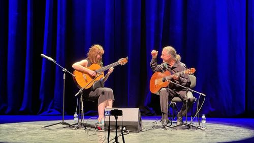 Julia Schuler, konuk Ricardo Moyano ile AKM Tiyatro Salonu'nda Türk, Brezilya ve Akdeniz ezgilerini klasik gitarla yorumladı.