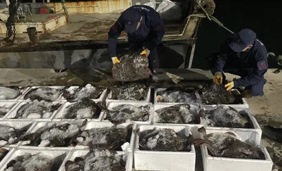 Sinop’ta kaçak olarak avlandığı belirlenen 880 adet Kalkan’a el konulduğu duyuruldu.