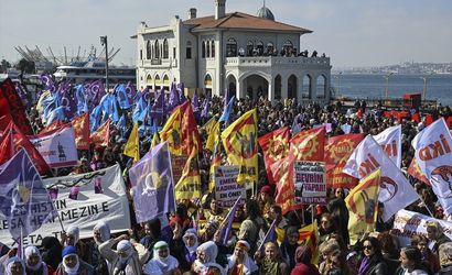Kadıköy'de, 8 Mart Dünya Kadınlar Günü dolayısıyla 'Büyük Kadın Buluşması' etkinliği düzenlendi. Rıhtım Caddesi ile Boğa Heykeli'nin çevresinde toplanan çok sayıda kadın, sivil toplum kuruluşlarının üyeleriyle birlikte taşıdıkları döviz ve pankartlarla İskele Meydanı'na yürüdü.