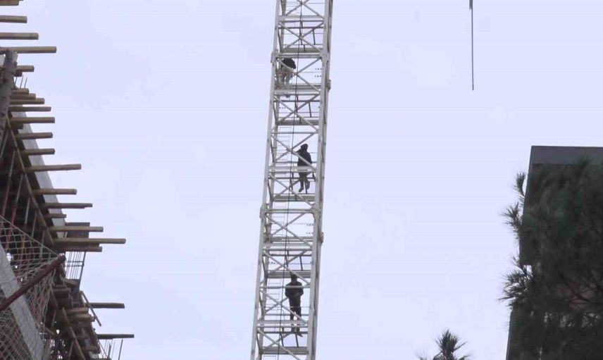 İddiaya göre, şantiyede çalışan yaklaşık 30 işçi, 2 aydır maaşlarını alamadıklarını belirtti. Bu işçilerden 4'ü, şantiye içerisindeki kule vincin tepesine çıkarak eylem yaptı.