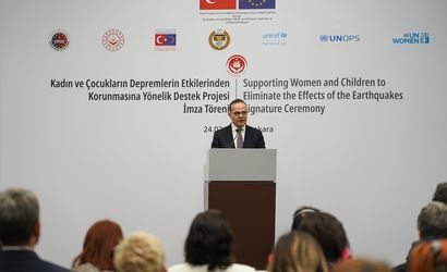 Başkentte, Acil Durumlarda Çocuk Koruma Hizmetlerinin Geliştirilmesi ve Desteklenmesi ile Çocukların Yaşamlarının İyileştirilmesi, Depremlerden Etkilenen Kadın ve Kız Çocuklarına Yönelik Şiddete Karşı Önleyici ve Koruyucu Hizmetlerin Onarılması ve Güçlendirilmesi projelerinin imza töreni yapıldı. Aile ve Sosyal Hizmetler Bakan Yardımcısı Leman Yenigün, bir otelde düzenlenen törene katılarak konuşma yaptı.