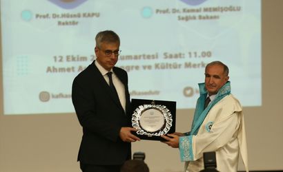 Törende, KAÜ Rektörü Prof. Dr. Hüsnü Kapu, Bakan Memişoğlu’na plaket vererek tebrik etti. Ayrıca, bir halk oyunları ekibi gösteri sundu.