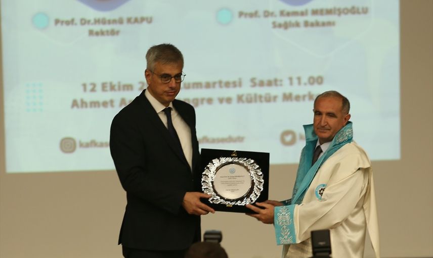 Sağlık Bakanı Kemal Memişoğlu, Kars'ta Ahmet Arslan Kongre Merkezi Ebul Hasan Harakani Salonu'nda düzenlenen Kafkas Üniversitesi (KAÜ) 2024-2025 Akademik Yılı Açılış Töreni'ne katılarak konuşma yaptı.