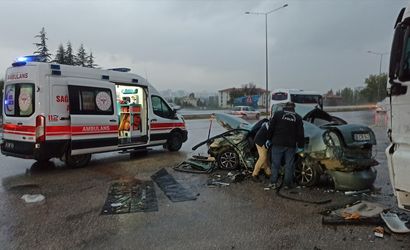 Kahramankazan'da park halindeki tıra çarpan otomobilde 3 kişi hayatını kaybetti