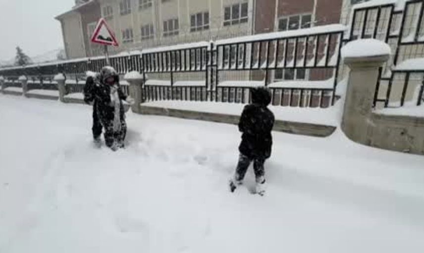 Valilik okulları tatil etti, çocuklar sabah karla eğlendi