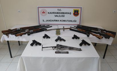 Kahramanmaraş merkezli 3 ilde düzenlenen kaçak silah operasyonunda gözaltına alınan 21 şüpheliden 13'ü tutuklandı. Yapılan aramalarda, 1 kalaşnikof piyade tüfeği, 1 makineli tabanca, 5 ruhsatsız tabanca, 10 ruhsatsız av tüfeği, 150 tabanca fişeği, 125 av tüfeği fişeği ve 4 tabanca şarjörü ile 1 kılıç ele geçirildi.