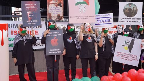 Kahramanmaraş'ta vatandaşların Filistin'e destek için sürdürdüğü sessiz eylemler, Onikişubat Yirmiikigün Mahallesi'nde tiyatro gösterileriyle 30. günde devam etti.