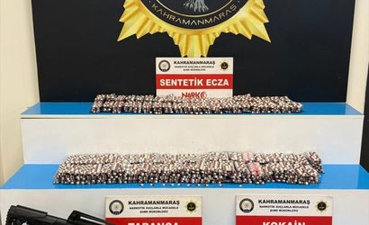 Kahramanmaraş'ta uyuşturucu operasyonunda gözaltına alınan zanlı tutuklandı. Zanlının adresinde yapılan aramada, 6 bin 802 sentetik ecza hapı, 1,36 gram uyuşturucu madde ile pompalı tüfek ele geçirildi.