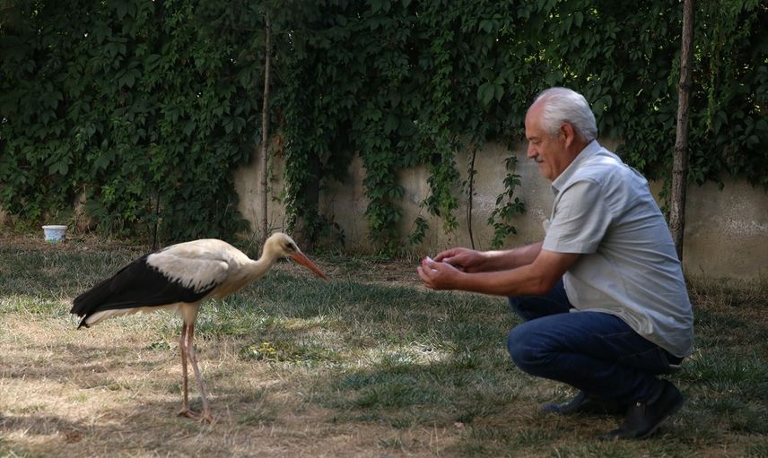 Kahramanmaraş'ın Göksun ilçesinde bir leylek yavrusu, yuvasından düşerek kanadını yaraladı. Olayı gören Ramazan Topçuoğlu, yardım etmek için kuşu hemen evine götürdü.