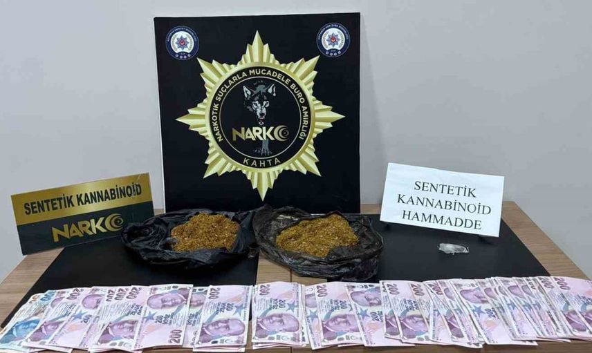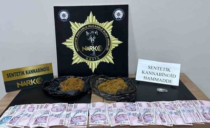 Aramada, 2 parça halinde toplam 144,7 gram tütüne emdirilmiş sentetik kannabinoid, 1 parça halinde 0,50 gram sentetik kannabinoid hammaddesi ile suçtan elde edildiği değerlendirilen 9 bin 750 lira ele geçirildi.