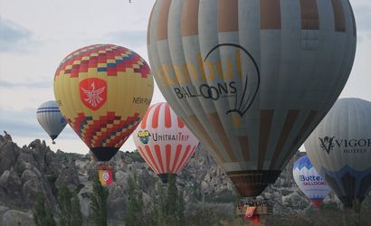 Nevşehir'in Göreme beldesindeki kalkış alanında, uçuş için hazırlanan sıcak hava balonlarının sepetlerine Türk bayrakları ve Atatürk posterleri asıldı. Tura katılan turistlerin sepetlere alınmasının ardından sıcak hava balonları, bölge semalarına yükseldi.