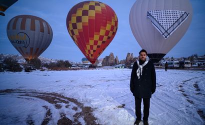 Kapadokya'da, Gazze'de yaşanan soykırımı protesto amacıyla düzenlenen "Barış Balonu" etkinliğinde, kefiye desenli 35 sıcak hava balonu gökyüzüne yükseldi. Kültür Medeniyet Vakfı (KÜME) tarafından, İsrail'in Gazze'ye yönelik sürdürdüğü soykırımı protesto amacıyla gerçekleştirilen etkinlikte, sıcak hava balonları yaklaşık 45 dakika boyunca peribacalarıyla kaplı vadiler üzerinde uçtu. KÜME (Kültür Medeniyet Vakfı) Yönetim Kurulu Başkanı Abdullah Eren, gazetecilere açıklamada bulundu.