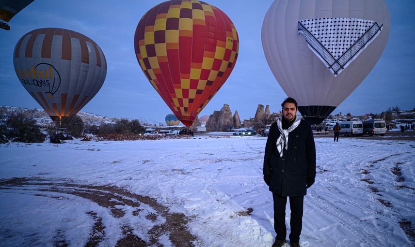 Kapadokya'da düzenlenen 'Barış Balonu' etkinliği, Gazze'de yaşanan soykırımı protesto etmek amacıyla gerçekleştirildi. Etkinlik kapsamında, kefiye desenli 35 sıcak hava balonu, gökyüzüne yükseldi.