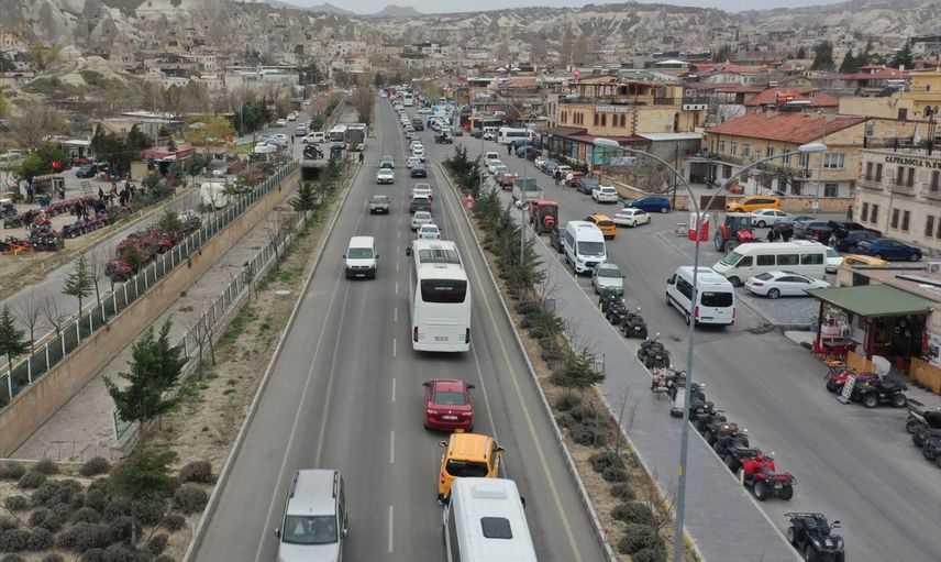 Dokuz günlük bayram tatili için Kapadokya'ya gelen ziyaretçiler nedeniyle Ürgüp ve Avanos ilçeleri, Göreme, Uçhisar, Ortahisar, Mustafapaşa beldeleri ile Çavuşin ve İbrahimpaşa köylerinde yoğun insan ve araç hareketliliği gözlemlendi. Tatilciler, bölgenin açık hava müzeleri, seyir alanları ve ören yerlerini gezerek keyifli vakit geçiriyor.