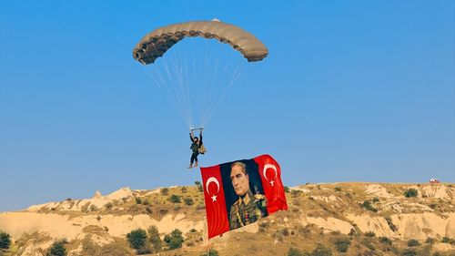 Nevşehir'de Jandarma Teşkilatının 186. kuruluş yıl dönümü dolayısıyla JÖAK timi, sıcak hava balonundan paraşütle atladı.