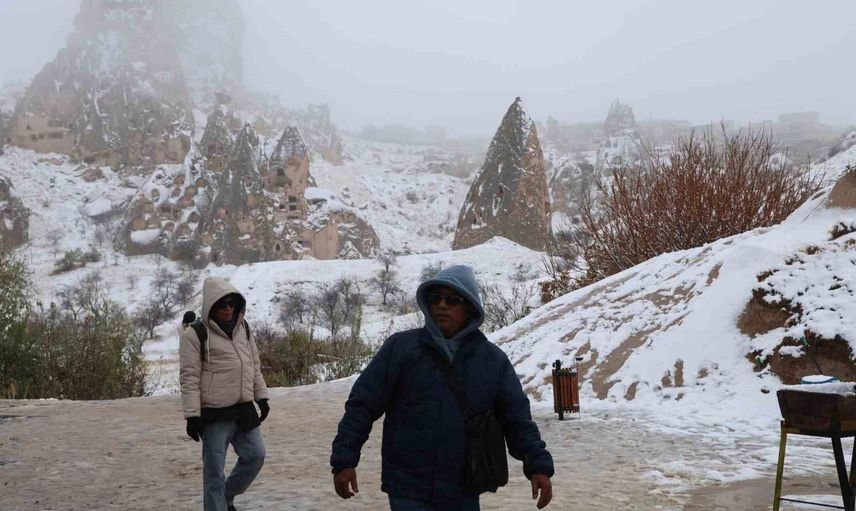 Nevşehir ve çevresinde sabaha karşı başlayan kar yağışıyla bölge kısa sürede beyaz örtüyle kaplandı. Karla kaplanan peribacaları ve doğal kaya oluşumları arasında gezen yerli ve yabancı turistler bol bol fotoğraf çekti.