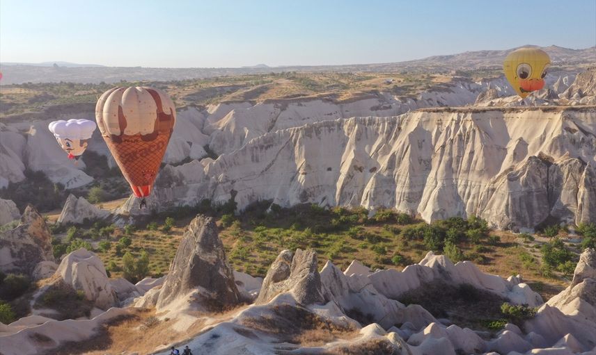 Figürlü sıcak hava balonları, peri bacalarıyla dolu Kılıçlar, Güllüdere ve Aşk vadileri üzerinde yaklaşık 45 dakika süren uçuşlarla bölge semalarına renk katıyor. Etkinlik, yarın Nevşehir Kültür Yolu Festivali’nin kapanış gününde Göreme'deki gösteri uçuşlarıyla devam edecek.