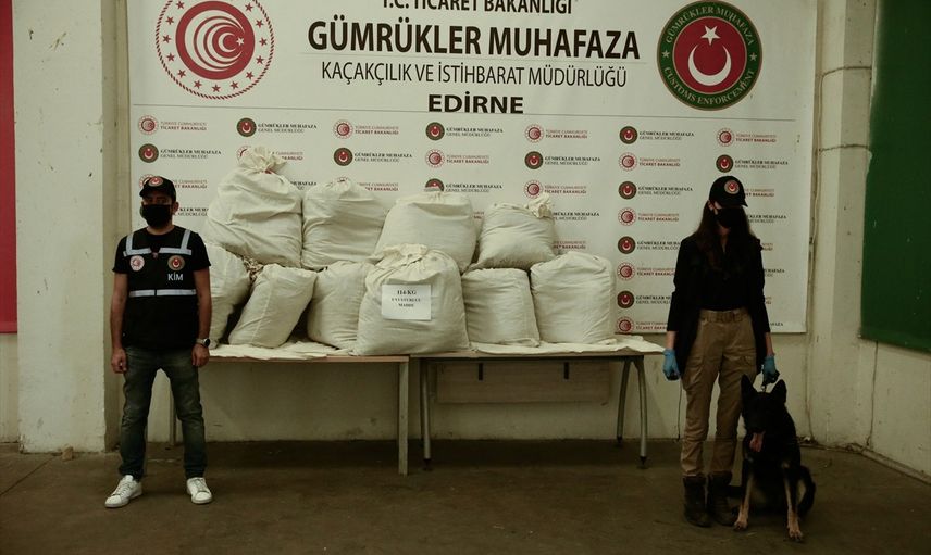 Edirne'deki Kapıkule Sınır Kapısı'nda, kimyasal madde taşımak için kullanılan bir tankere gizlenmiş 114 kilogram esrar ele geçirildi.