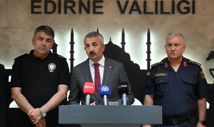 Edirne Valisi Yunus Sezer (ortada), dün Edirne'deki sınır kapılarında 62 bin 263 yolcu ve 14 bin 730 araç girişiyle tek günde tüm zamanların rekorunun kırıldığını belirtti.