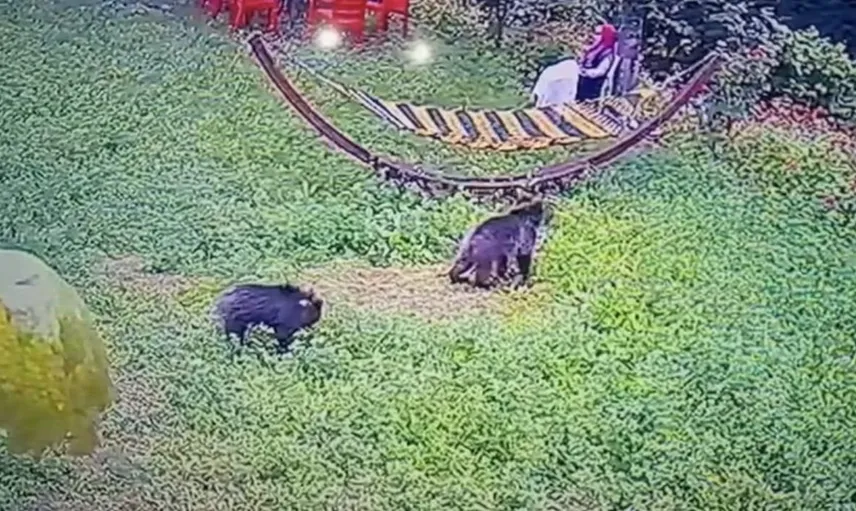 Görüntülerde yavru ayıların bahçede gezindiği ve çevreyi incelediği anlar yer aldı; olayla ilgili başka bir ayrıntı paylaşılmadı.
