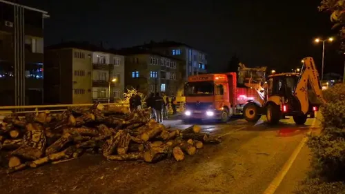 Karabük-Kastamonu karayolunda kamyondan dökülen odunlar kaldırıldı