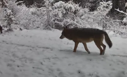 Karabük'ün Ovacık ilçesinde, doğasever Ramazan Işık'ın evine yakın ormanlık alana kurduğu fotokapan, yiyecek arayan bir vaşak ile iki kurt'u kaydetti.