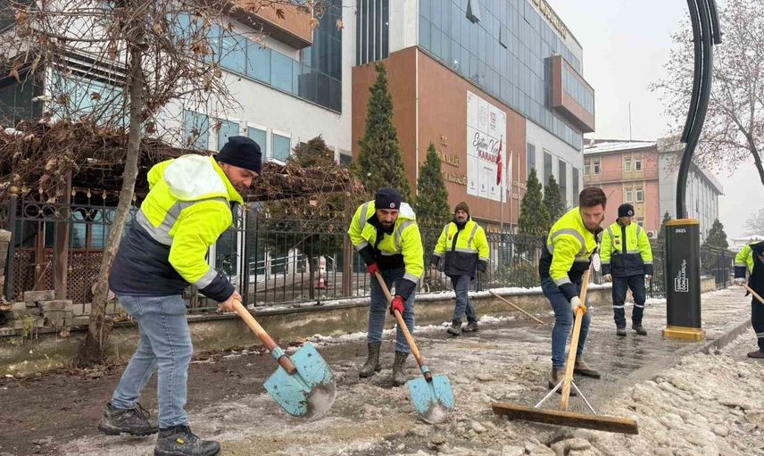 Kar yağışının sona ermesine rağmen belediye ekipleri, şehir genelinde ulaşımın ve günlük yaşamın sorunsuz şekilde devam etmesi amacıyla sahadaki çalışmalarına devam ediyor. Cadde ve sokakların yanı sıra yaya yollarında biriken karlar ekipler tarafından temizlenirken, şehir genelinde düzenin sağlanmasına yönelik çalışmalar planlı bir şekilde yürütülüyor.