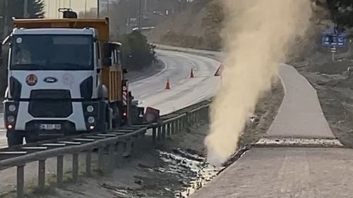 Karabük’te Karayolları çalışması sırasında doğal gaz borusu patladı