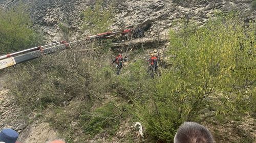 Karabük'ün Başköy köyünde kayalık alana düşen inek, AFAD ekipleri tarafından kurtarıldı.