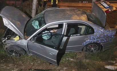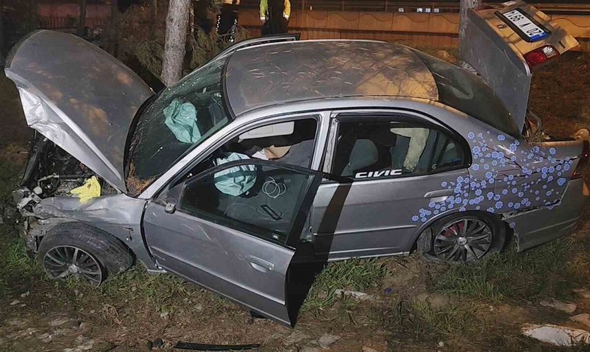 Karabük’te kontrolden çıkan otomobil duvara, direğe ve ağaca çarptı