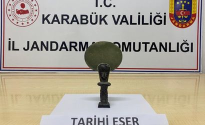Karabük'ün Safranbolu ilçesinde İl Jandarma Komutanlığı ekiplerince düzenlenen operasyonlarda, Antik Mısır dönemine ait olduğu değerlendirilen bir heykel ile çok sayıda tarihi eser, silah ve patlayıcı madde ele geçirildi.