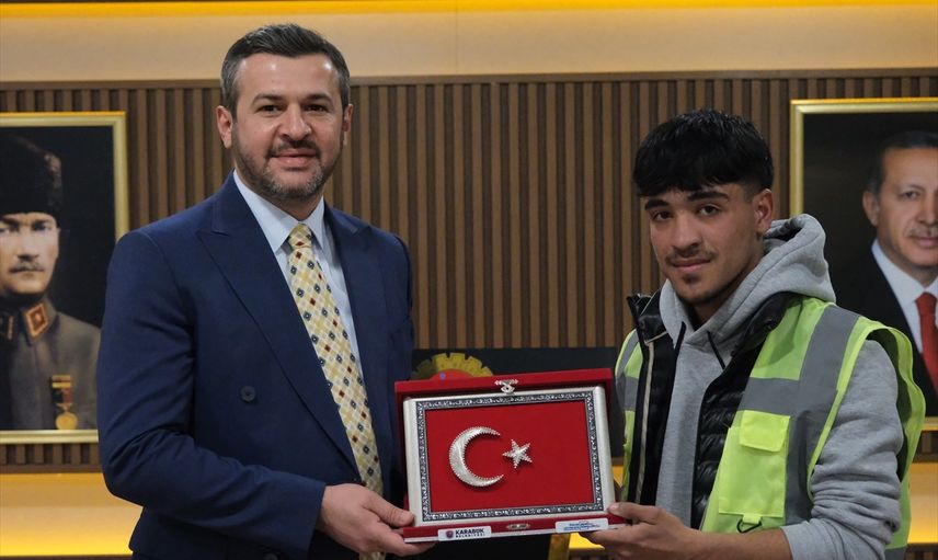 Karabük Belediye Başkanı Özkan Çetinkaya, Misoğlu’nun Türk bayrağına gösterdiği hassasiyeti takdirle karşıladı. Başkan Çetinkaya, işçiye içinde Türk bayrağı bulunan bir plaket ve hediye çeki takdim etti.