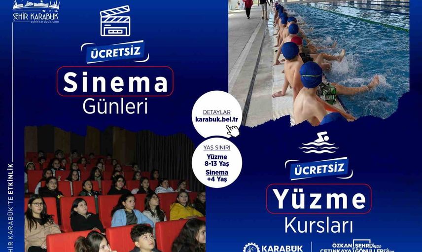 Karabük Belediyesi tarafından çocukların sportif ve kültürel gelişimlerine katkı sağlamak amacıyla düzenlenen ücretsiz yüzme kursları ve sinema etkinlikleri devam ediyor.