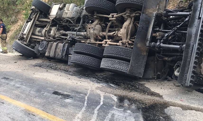 Karabük'te Zift Yüklü Kamyon Devrildi