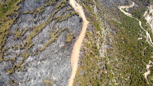 Karabük'te 31 saat süren yangın kontrol altına alındı, zarar gören orman alanı dronla görüntülendi.