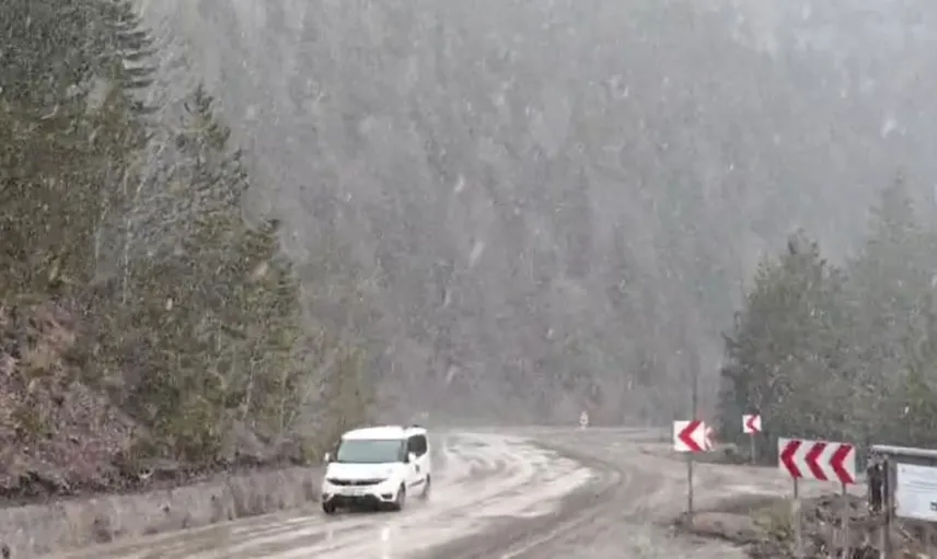 Karabük-Bartın kara yolunun 1030 rakımlı Ahmetusta mevkisinde başlayan kar yağışı, kısa sürede yol boyunca etkili oldu. Güzergahı kullanan vatandaşlar, yağışın başladığı o anları cep telefonu kamerasıyla kayda aldı.