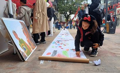 Karabük ve Bolu'da çocuklar metrelerce resim kağıdına Filistin için destek çizdi