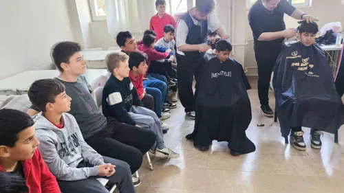 Karacabey Bronz Bay-Bayan Güzellik Salonu, Sincansarnıç Ortaokulu'nda 23 Nisan Öncesi Ücretsiz Saç Kesimi Düzenledi