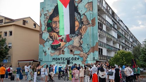 Podgoritsa'da açılan duvar resmi, Filistinli çocukların masumiyetini simgeliyor ve Karadağ'ın Filistin'in yanında olduğunu vurguluyor.