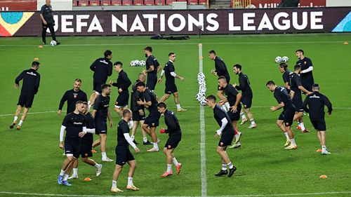 Karadağ A Milli Takımı, Türkiye ile yapacağı maça Samsun'da son hazırlıklarını tamamladı ve stadyumda antrenman yaptı.