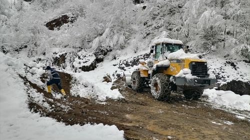 Karadeniz'de kar yağışı nedeniyle 977 yerleşim yerinin yolu kapandı. Ekipler, yolu açmak için çalışmalarını sürdürüyor.