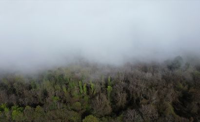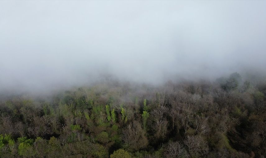 Kastamonu'nun Karadeniz sahilindeki ilçesi Abana'da etkili olan sisin oluşturduğu manzara dronla görüntülendi.