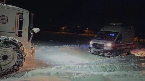 Karakoçan'da Aşağı Ovacık köyüne hasta götüren ambulans kar ve buzlanma nedeniyle kara saplandı; İl Özel İdaresi ekipleri müdahale ederek ambulansı kurtardı.