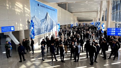 Kırgızistan'da Tanrı Dağı'ndan ilham alınarak yenilenen Karakol Uluslararası Havalimanı, hizmete açıldı.