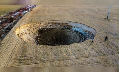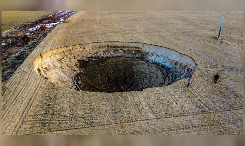 Karaman’da oluşan 63 metre çapında ve 35 metrelik derinliğe sahip obruk, yetkililere bildirildi.