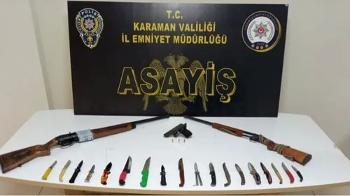 Karaman'da asayiş uygulaması: Ruhsatsız silah, uyuşturucu ve bıçak ele geçirildi; 5 tutuklama