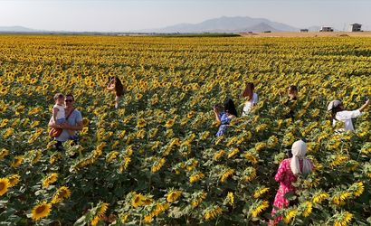 Karaman'da "sarı gelin" ve "gündöndü" olarak da bilinen ayçiçeği tarlaları, fotoğraf meraklıları için doğal bir stüdyo oluyor.